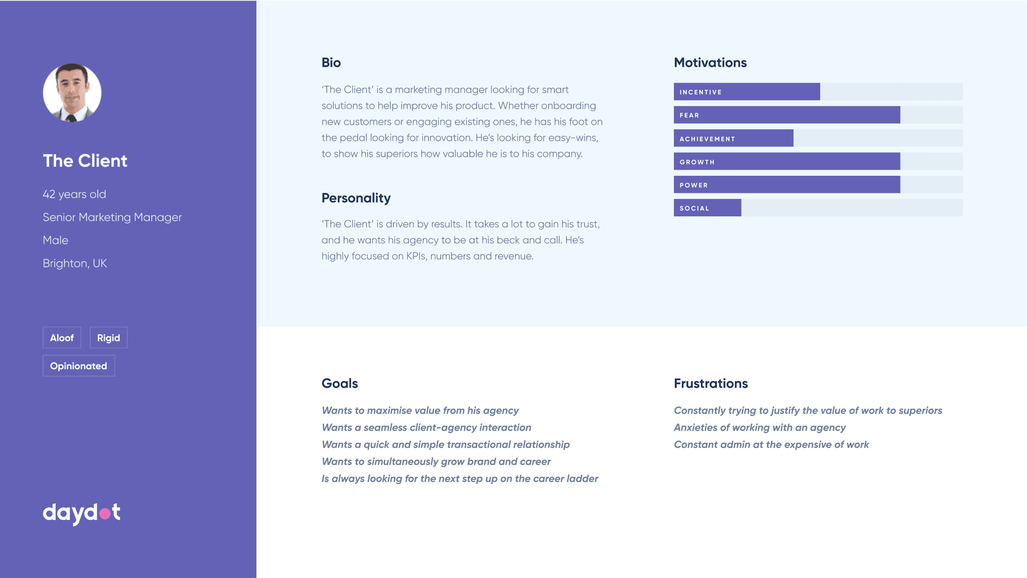 Daydot are a leading experience optimisation agency based in London. Using a test and learn approach, I led a rebrand of their communication across product and marketing.